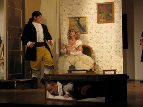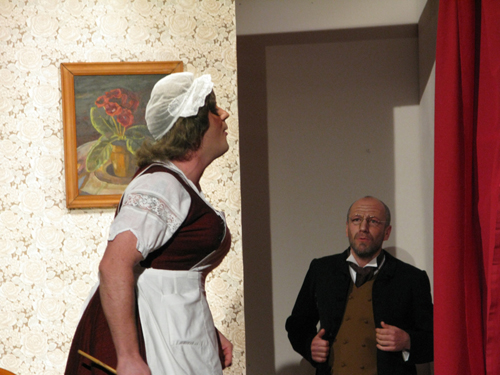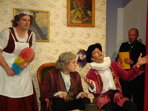 Dans les coulisses d’une grande salle de village, des comédiens amateurs s’apprêtent à jouer une pièce écrite… par le régent ! Et pour se donner du courage, ils n’hésitent pas à boire un peu plus que de raison.